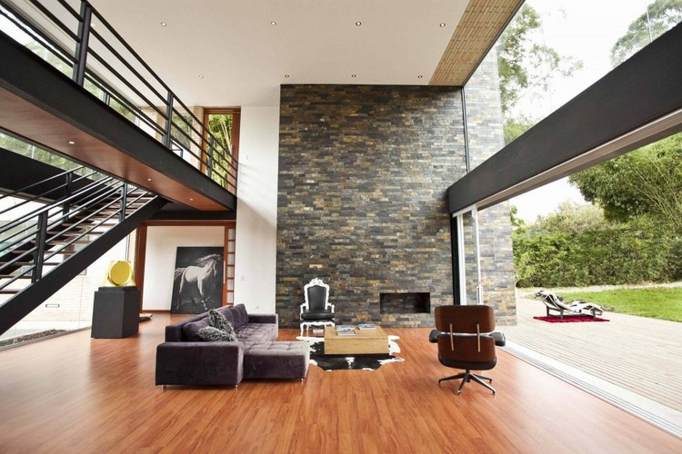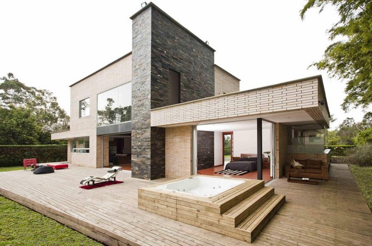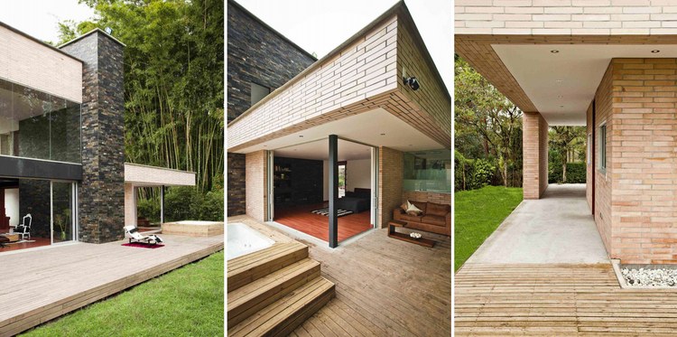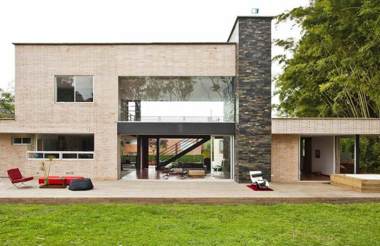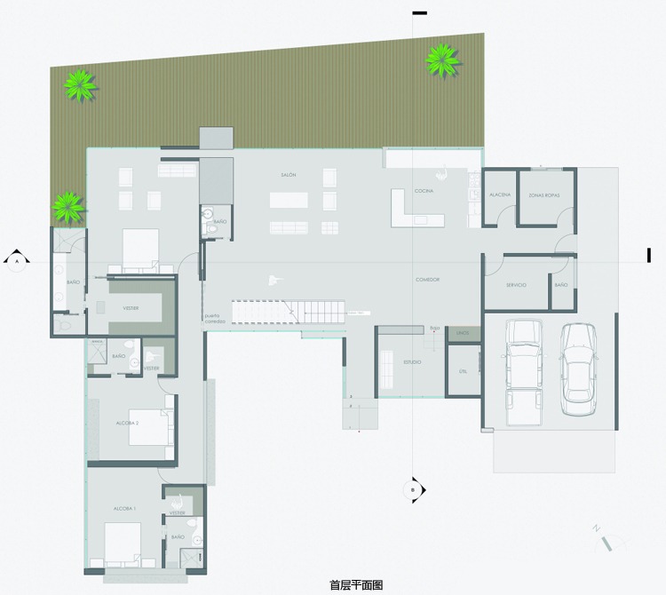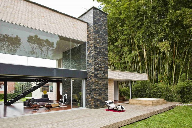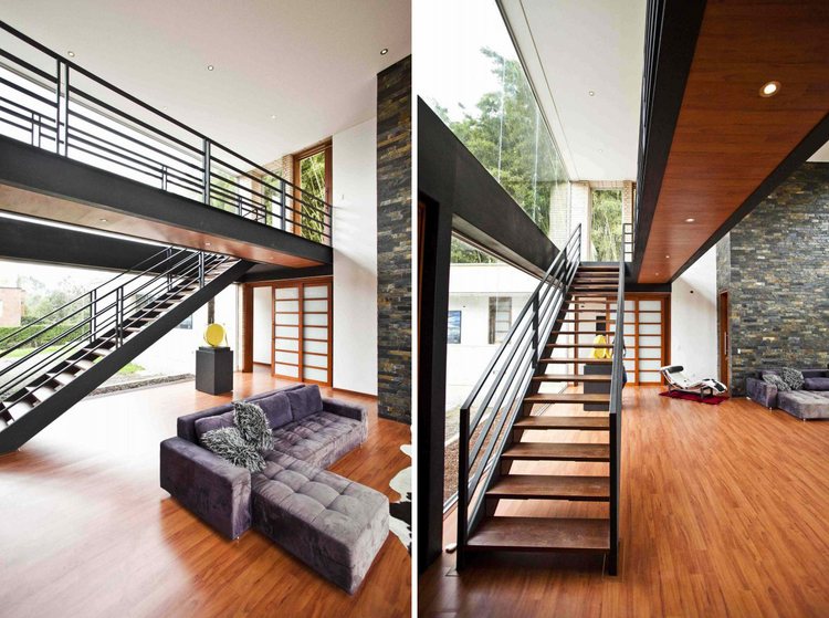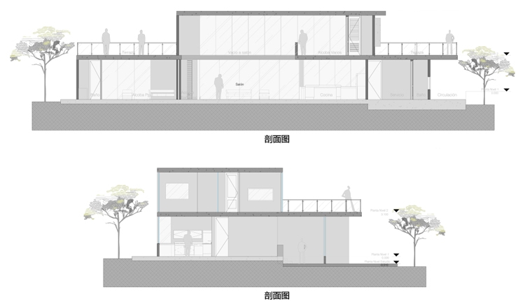 別墅設(shè)計(jì),Olaya別墅(Olaya House)Olaya別墅位于哥倫比亞Medellin市中心大概45分鐘的車程,房屋的首層采用統(tǒng)一樣式的磚塊鋪筑而成,但各功能分區(qū)布局規(guī)整、明確,包括服務(wù)區(qū)、活動(dòng)區(qū)和私人區(qū)。服務(wù)區(qū)域包括車庫(kù)、傭人房、洗衣房和貯藏室。活動(dòng)區(qū)內(nèi)設(shè)有一個(gè)巨大的廚房并與用餐區(qū)和主客廳相對(duì),通過(guò)一道甲板式通道便可來(lái)到院落。私人區(qū)有三個(gè)我是,每一個(gè)房間都帶有獨(dú)立衛(wèi)生間、浴室和更衣室。活動(dòng)區(qū)與私人區(qū)被一道巨大的黑色磚墻所隔開(kāi),不論從室內(nèi)還是室外都可以看到這道墻,同時(shí)墻體也是房屋主結(jié)構(gòu)之一,墻體內(nèi)部設(shè)有一個(gè)公共于是和兩個(gè)獨(dú)立的煙囪,分別服務(wù)于主臥和主客廳的通風(fēng)。經(jīng)過(guò)位于一層服務(wù)區(qū)的風(fēng)格化樓梯便可以來(lái)到二層:這里簡(jiǎn)單舒適,分為兩個(gè)寬敞的區(qū)域,一個(gè)是書(shū)房一個(gè)是主臥,另外還設(shè)有兩個(gè)巨大的露臺(tái)陽(yáng)臺(tái),可以從這里欣賞外面的風(fēng)景。值得一提的是,露臺(tái)與房屋由一座小橋連接。