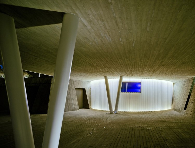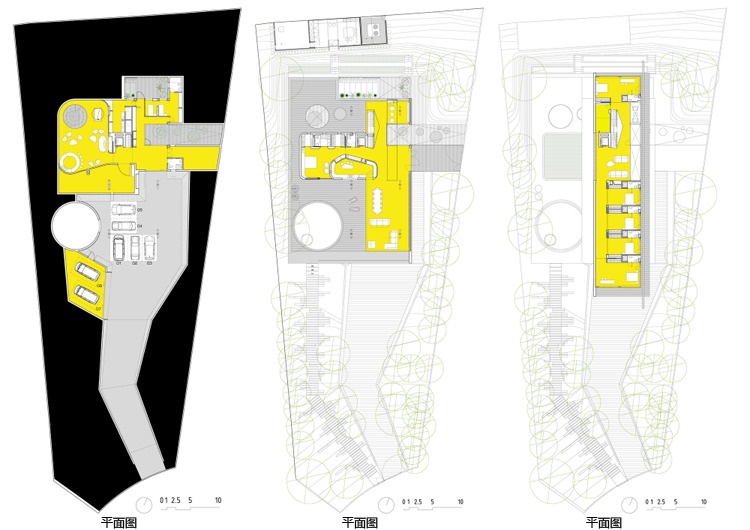 1.舒適性體驗(yàn) 地下室內(nèi)部映照著一定的自然光可以滿足休閑娛樂所用。趣味從停車庫開始,透過這里的后擋風(fēng)玻璃窗設(shè)計(jì)可以看見游泳池;由彩色模壓混凝土鋪筑成的人行道加強(qiáng)了房間與室外區(qū)域的聯(lián)系; 2.居住性體驗(yàn) 一層包括一個(gè)C形區(qū)域并向私人開放向空間敞開。巨大的懸臂頂棚將內(nèi)外區(qū)域連接起來,家人可以在這里聽音樂、看展覽。