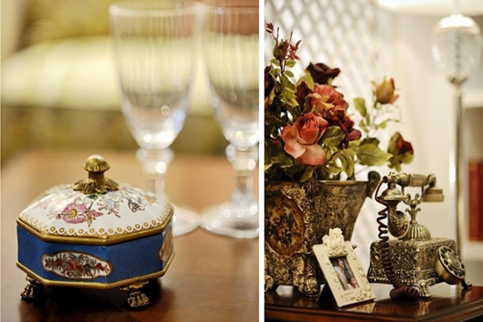 別墅中有大量的裝飾擺件,無論是歐式經典的電話還是復古風格的化妝盒,都能看出很多不少的故事。精致的裝飾本身就是一件極有藝術色彩的珍品,又能很好的提升整個家居的生活品質。