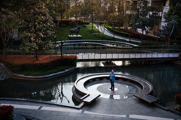 30歲的企業家丹尼爾·張在家中小區的花園內。丹尼爾的家坐落在天價樓盤”湯臣一品內。