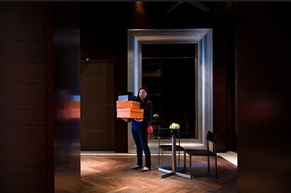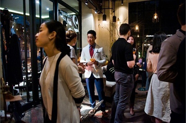 上海,Pistacchio咖啡店內正在舉行的意大利手工定制服裝展示會。